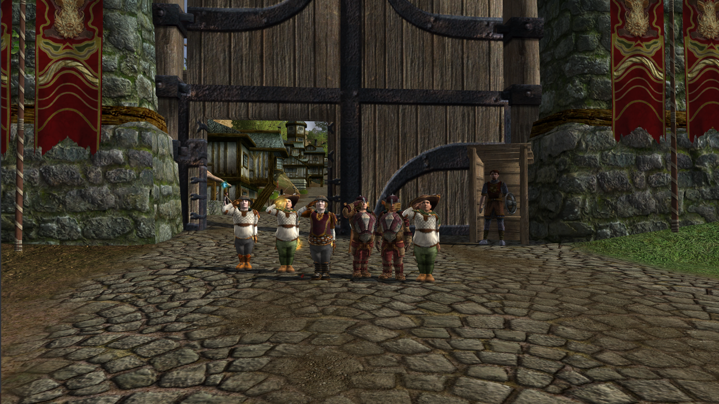 You may notice at this point, from the title of this article, that only six of the intended eight Hobbits undertook this perilous journey. Unfortunately, our union of the vertically challenged was cut short two attendees before we could even begin. One brave Hobbit happened to create his character on a different server to the rest of us and, understandably unwilling to trudge through the opening of the game again, remained trapped in a parallel Middle Earth. Our other companion, in a less heroic fashion, was too distracted with the newly released Total War: Warhammer III to even begin his quest. Nevertheless, six of us sought to convene late one Friday night at The Ivy Bush in Hobbiton, a six-minute walk from Little Delving. I was Nobgohild, my companions were Warwick, Largeo, Knobsmugglin, Chungimungi and, of course, Rimtingler. We decided to enjoy our hometown of The Shire one last time before setting off, for we knew not when we would return. Merriment was had by all, as we downed our beer and each enjoyed a fine puff on some of the local pipe-weed. With the morning sun on our backs, we then set out Eastward towards the Bree-lands via Woodhall, the first major stop on our journey.