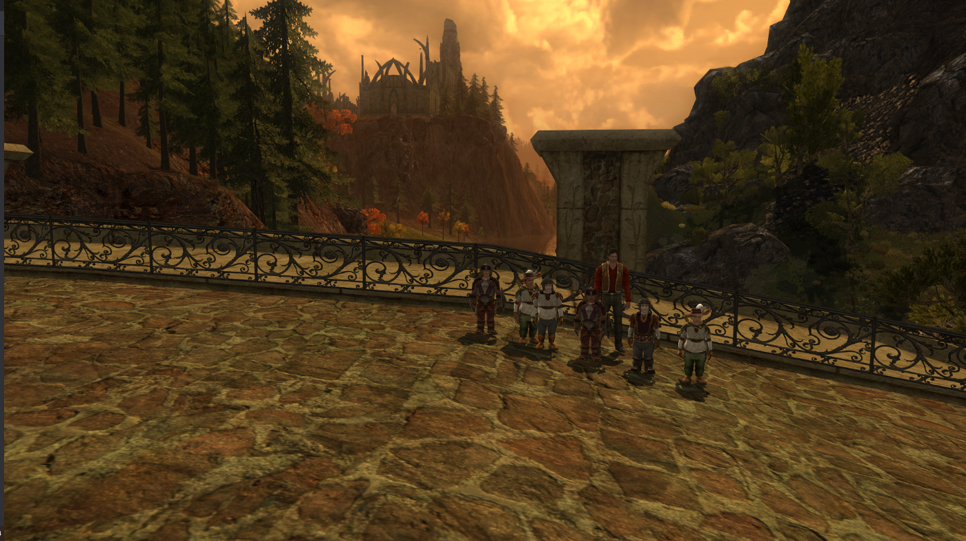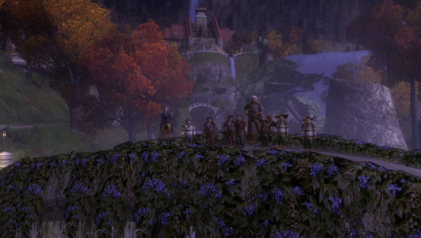 We were no longer a simple party of Hobbits, but a true, honest-to-God fellowship. Belta, Ealotiel and Greleg, complete strangers to us and to each other, guided us through the pitch-black forest while asking not a thing in return. Passing through the Brumen Gorges and High Moor we were attacked by all sorts of villains, including some positively massive trolls (who would’ve been inactive during daytime hours). These giants were, however, no match for our trio of guardians, who dealt with them with ease. These high-level players formed a protective circle around us, their adopted Hobbit companions. It was with great relief that we finally crossed the border into Rivendell and began our descent from the hills into the center of the beautiful city. Even in the still of night, the blooming flowers and grand architecture of the Elven hub thrummed with a wonderous energy. A grand bridge marked the entrance to the city and, of course, we just had to stop and take a picture to mark the occasion. I (Nobgohild), Warwick, Chungimungi, Rimtingler, Largeo, Knobsmugglin, Belta, Ealotiel and Greleg all posed for a photo — the impressive Rivendell waterfall serving as the perfect backdrop. While we had not yet made it to Mordor, we had certainly made it somewhere. Far out of their comfort zone, deep within areas intended for powerful characters, a small group of level six Hobbits now resided. The perilous journey was wrought with danger, but through the kindness and companionship of strangers turned friends, we could now say that we were at least a third of the way there. In the end, this story really wasn’t even about us, it was superseded by the three legendary players who made it all possible; genuine heroes, who gave up two hours of their time just to ensure that six fools with a dream made it as far as they did. It was truly a play session that I will never forget, one of those rare, beautiful moments where a video game transcends into a true, unmistakable adventure. The characters that made themselves known to us, their arcs and mannerisms, the fact that they were all real people sat at their own computers God knows where in the world — the planets aligned and created something special. The quality of LOTRO’s player base, if Belta, Ealotiel and Greleg are anything to go by, is truly one of a kind. I can only thank all three (and my five real-life friends) for one of the best MMO experiences I’ve ever had. And you know what the most exciting thing is? The journey has only just begun.