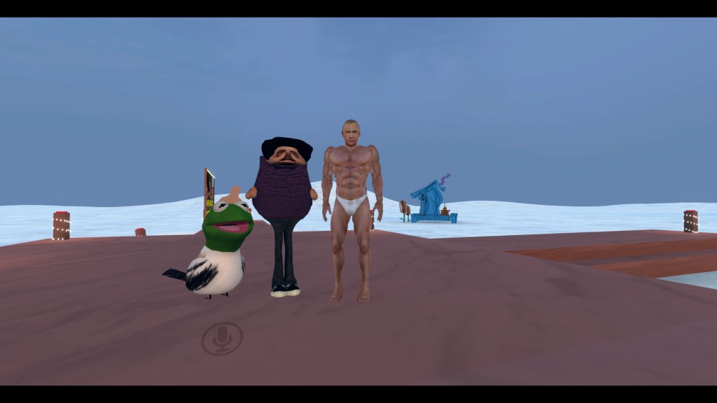 The flipside to the intoxicating surrealism of the game is the genuinely normal, nice interactions that are usually taking place in the very same world. People are friendly in VRChat, usually logging in with the express desire of meeting new people and learning about different walks of life. I once met a man who was on a research trip surveying the Amazon Rainforest, we talked passionately about conservation for a while at the table of an upstairs bar, before his spotty internet connection dropped him from the server. I’ve played mini-golf with Canadian dads, drawn caricatures on the ocean floor with a gaggle of drumming cats and even attended cult movie nights led by in-game celebrities. I’ve seen entire groups of people humbled by the furry community, invading their little bubble in order to troll, only to receive an education in tolerant internet sub-cultures. Standing still in any given location will, nine times out of ten, result in somebody swinging by to say hello and shoot the shit with you — it’s the kind of openly pleasant interaction that makes you wish the real world could be similar. Maybe, however, that’s the joy of a pre-normalisation VR. If Meta were to arrive in its promised form, a revolutionary platform that introduces your average joe to the wonders of virtual space, then that wide-eyed, friendly curiosity would give way to something colder, something a little more corporate. As it stands, VRChat serves as a haven for the truly eccentric to coexist in a safe space, un-assailed by the crushing weight of what constitutes ‘normal’ interaction. If the game has proved anything to me over the course of multiple play sessions, it’s that anime geek utopia does exist and, for the most part, provides a constant stream of entertaining, positive social interaction. I should, however, postface this claim by acknowledging that, as a man, this kind of internet space is always going to be much easier for me to be a part of. It would be entirely wrong to try and claim that female, trans, non-binary and players with any kind of accent people may deem ‘foreign’ will share my experiences. Even behind the physical veil of an avatar, there will still be idiots who hear a feminine voice, or a voice that sounds ‘different’ and decide to act inappropriately — at least in VR you can make use of the block function, essentially erasing toxic individuals with the click of a button. Now, wouldn’t that be handy on a real night out?
